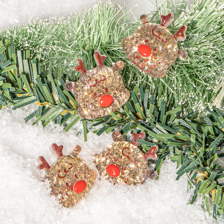 Christmas Transparent Resin Cabochons – Glitter Reindeer Shapes