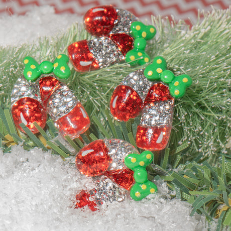Christmas Transparent Resin Cabochons – Glitter Candy Cane Shapes