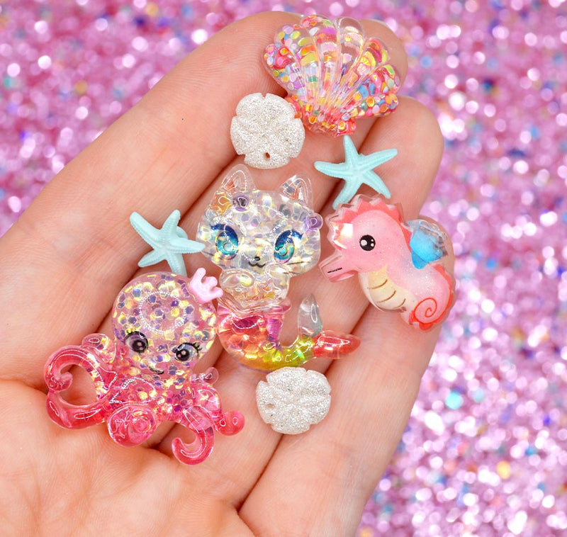 Christmas Transparent Resin Cabochons – Glitter Santa Shapes