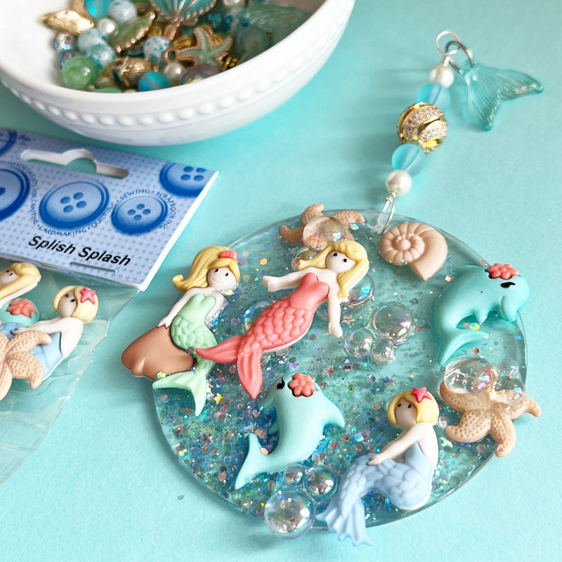 While all crafting is fun, sometimes a project really stands out and May Flaum found this Sun Catcher/Ornament to be one such craft! With just a few tools and her favorite Dress It Up buttons May is able to transform a simple clear ornament base into a MerMAY dream ready to hang in any window or top any gift.