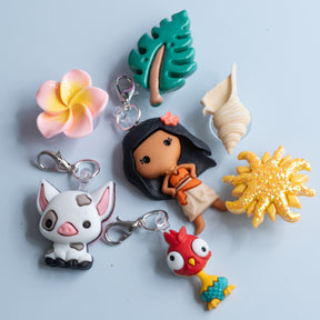Shoe Charmz Set in Island Adventure is inspired by the spirit of Moana and her ocean journey. Featuring tropical dangle and plug-in charms like flowers and island motifs, this set fits perfectly into the holes of your Crocs-style shoes. Add a touch of island magic to your steps and sail into your day with style!