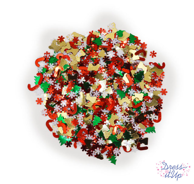 Bring holiday magic to your crafts with this festive sequin mix! Featuring snowflakes, stockings, candy canes, and pine trees, these vibrant sequins are perfect for embellishing cards, ornaments, clothing, and more. Add a sparkling touch of Christmas cheer to all your DIY projects!