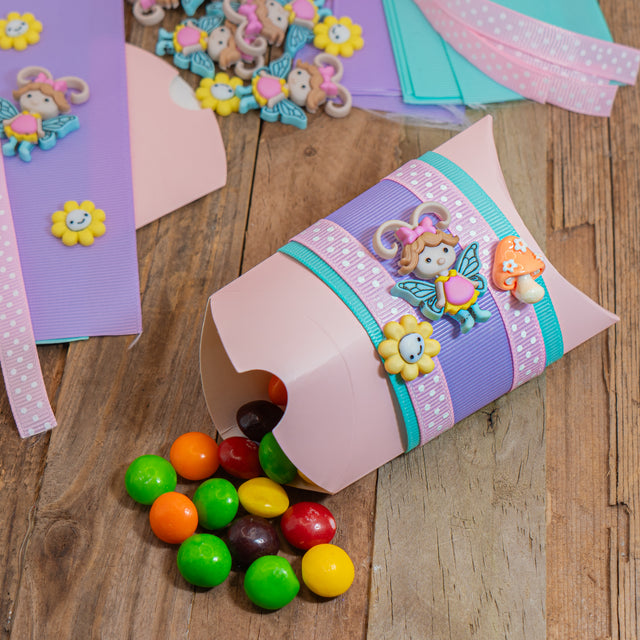 Inside, you’ll find everything you need to craft magical little favors: whimsical decorations, fluttery ribbon, and 6 easy-to-assemble pillow boxes. Just add your favorite sweets, fairy dust, or woodland treasures, and let the enchantment begin!