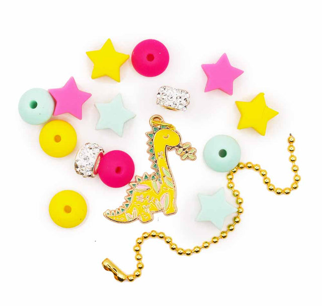 This DIY set includes an enamel dinosaur charm, ball chain & clasp, and a mix of coordinating silicone beads, making it easy to craft cute and colorful charms for purses, backpacks, pencil cases, makeup bags, and more. Perfect for dino lovers and easy gift-making!