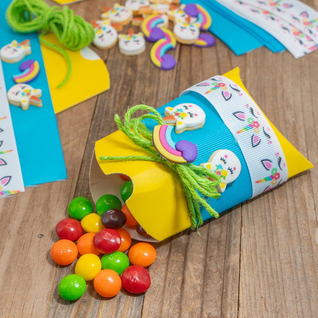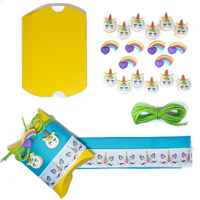 Inside, you’ll find everything you need to create enchanting favors: sweet unicorn decorations, pre-cut ribbon, and 6 easy-to-assemble pillow boxes. Just add your favorite treats, tiny treasures, or fairy dust, and let the unicorn magic shine