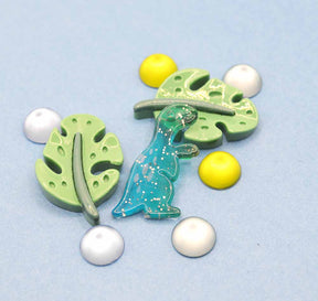 Featuring a fierce T. rex, tropical leaves, and sparkly jelly dots, these flat-back embellishments are perfect for adding a fun, dino-inspired touch to DIY projects and handmade gifts.