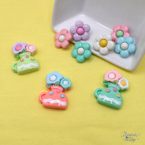 Serenity In Petals Flower Pots Shiny Flat Back Embellishments