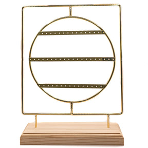 Showcase your jewelry with elegance using this Golden Rotating 3-Tier Earring Display Stand. Designed with a sturdy iron frame and a natural wooden pedestal, this stand provides both stability and style. Its rotating design allows for easy viewing and access, making it perfect for organizing and displaying dangle earrings at home, in boutiques, or at craft shows. With three spacious tiers, it offers plenty of room to keep your collection neatly arranged while adding a touch of sophistication to your display. Each stand measures: 25.2x34.2x7.3cm