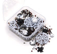 Add a creepy-cute touch to your crafts with our Sequin Shaker Embellishment Mix in Spider Web, featuring tiny black spider and web buttons from Dress It Up, shimmering faux pearls, 11/0 seed beads, and sparkly white glue-on rhinestones. Perfect for shaker cards, resin art, and spooky DIY décor, this mix weaves just the right amount of Halloween magic into your projects.