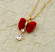 Golden Rhinestone & Fabric Bowknot Necklace