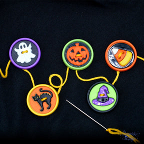 Add some fun to your Halloween crafts with these large sewing buttons. Each pack features black cat, ghost witch's hat, candy corn, and jack o' lantern. Perfect additions to trick-or-treat bags, costumes, decor and more. Perfect for sewing, scrapbooking, paper crafts, jewelry-making, and DIY home decor and party crafts