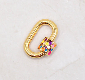 Bring a functional yet stylish touch to your jewelry creations with these Brass Screw Carabiner Lock Clasps. Featuring a colorful enamel finish and an oval design, each charm is plated with real 18K gold for long-lasting shine and is free from cadmium, lead, and nickel. Measuring 23mm x 15mm x 2mm with a 7.5mm x 6.5,, x 6.5mm screw, they’re perfect for securely attaching to necklaces, bracelets, or other creative projects. Ideal for adding both practicality and flair, these carabiner lock charms combine durability, vibrant color, and elegant design in every detail.