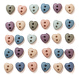 These earthy colored mini heart buttons add a little romance to any crafting creation. Each pack features sew-through hearts in custom dyed colors.
