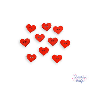 Tiny Wood Hearts Red 2-Hole Buttons