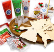 This fun and festive kit includes everything you need to design and decorate 6 wooden Christmas ornaments in shapes like bells, Santa hats, reindeer, and more.