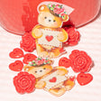 This adorable Valentine-themed pack features small red 2-hole heart buttons, loop-back red rose buttons, and two acrylic charms of a sweet teddy bear holding a love letter topped with a fancy floral hat. Perfect for crafts, scrapbooking, accessories, and DIY projects, it adds a playful and romantic touch to every creation.