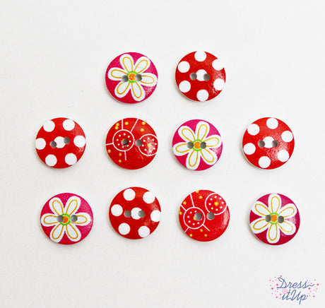 In stock$3.49Unit priceUnavailableWood Buttons in Polkadot Flowers Multi Color 2-Hole