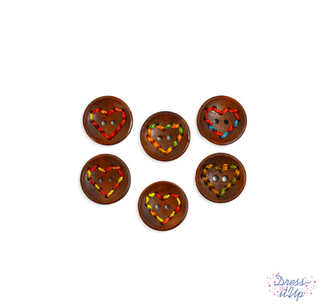 Low stock (9 units)$3.49Unit priceUnavailableWood Buttons In Rainbow Thread Heart Round 20mm 2-Hole Sew Thru