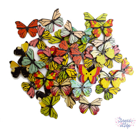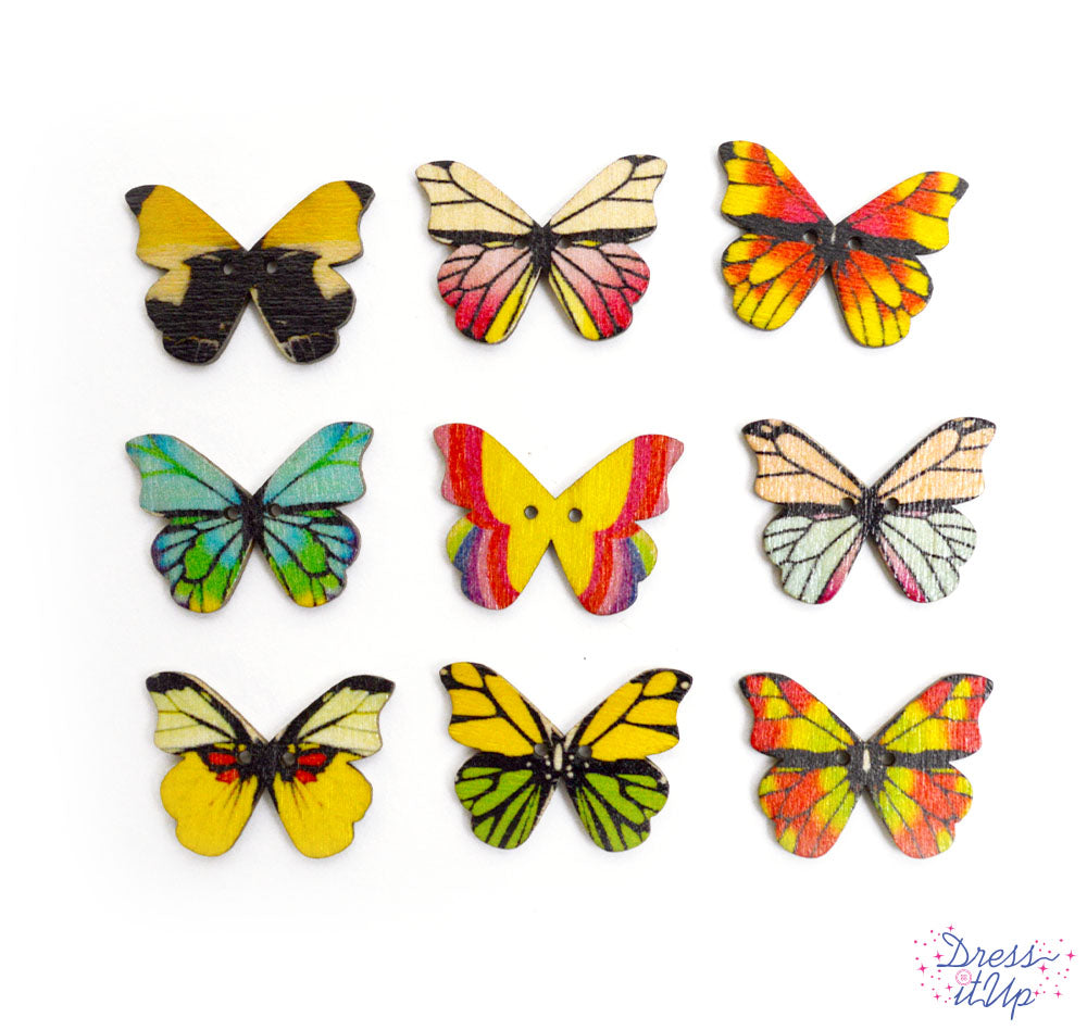 Wood Buttons in Butterfly Garden Nature 2-Hole Buttons