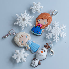 Shoe Charmz Set in Frozen Friends brings the magic of Arendelle to your garden clogs. Featuring Anna, Elsa, Olaf, and snowflake-inspired designs, this set includes a mix of dangle and plug-in charms that fit perfectly into the holes of your Crocs-style shoes. It’s the perfect way to add a touch of icy sparkle and sisterly love to every step!
