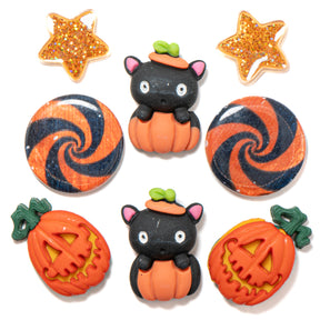 These kitties are spooky! This festive Halloween-themed craft embellishment pack includes two black cat resin pieces and an assortment of shank-back-themed buttons.