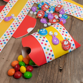 Inside, you’ll find everything you need to create monstrously cute favors: colorful embellishments, themed ribbon, and 6 easy-to-assemble pillow boxes. Just add your favorite goodies, stickers, or silly surprises, and let the monster mash begin!