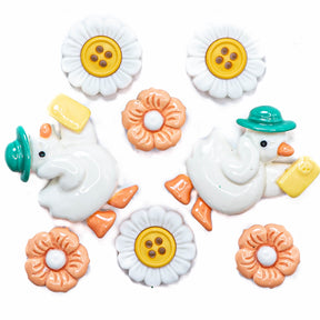 This delightful set features an adorable goose embellishment alongside playful florals, perfect for adding a hint of whimsy and rustic flair to your creations. Whether you're scrapbooking, decorating greeting cards, sewing, or adding a unique twist to jewelry, these embellishments will inspire creativity in every project.