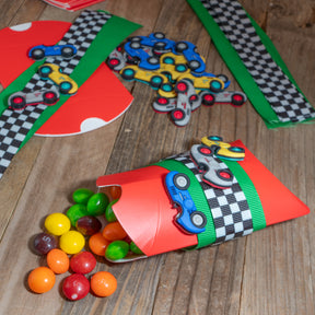 Inside, you’ll find everything you need to create turbo-charged favors: themed embellishments, racing-inspired ribbon, and 6 easy-to-assemble pillow boxes. Just add your favorite snacks, stickers, or mini surprises, and you're ready to hit the party finish line in style!