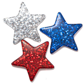These star embellishments are sure to add some glam to your next patriotic project. Great additions to baskets, centerpieces, sewing, embroidery, wood crafts, and more. Each pack includes glitter stars in red, white and blue.