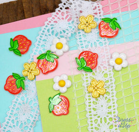 This enchanting collection brings the essence of a sun-kissed strawberry field to your crafting projects, offering a variety of delightful strawberry-themed pieces. Perfect for adding a touch of whimsy and vibrant color, these embellishments are ideal for scrapbooking, sewing, DIY decor, and more.