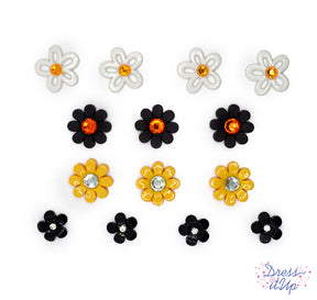 Boo-tiful Flowers Yellow Black Orange Flower Buttons