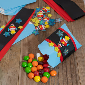Inside, you’ll find everything you need to make your favors shine like the stars: celestial ribbon, fun space-themed embellishments, and 6 easy-to-assemble pillow boxes. Just add your favorite candy, stickers, or tiny treasures, and you’re cleared for party launch!