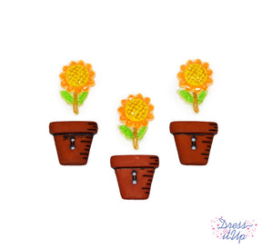 The glittery resin sunflowers capture the essence of autumn sunshine, while the sew-thru flower pot buttons are perfect for adding a dimensional touch to fabric-based or mixed-media crafts. These embellishments are ideal for enhancing your fall-themed projects with vibrant colors and playful details. Item #13252.