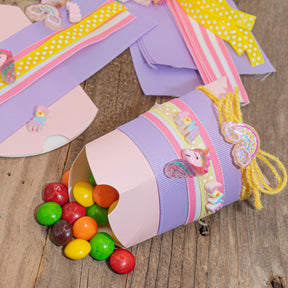 Inside, you’ll find everything you need to create enchanting favors: unicorn and rainbow embellishments, themed ribbon, cord, and 6 easy-to-assemble pillow boxes. Just add your favorite treats, stickers, or tiny treasures, and let the unicorn magic begin!