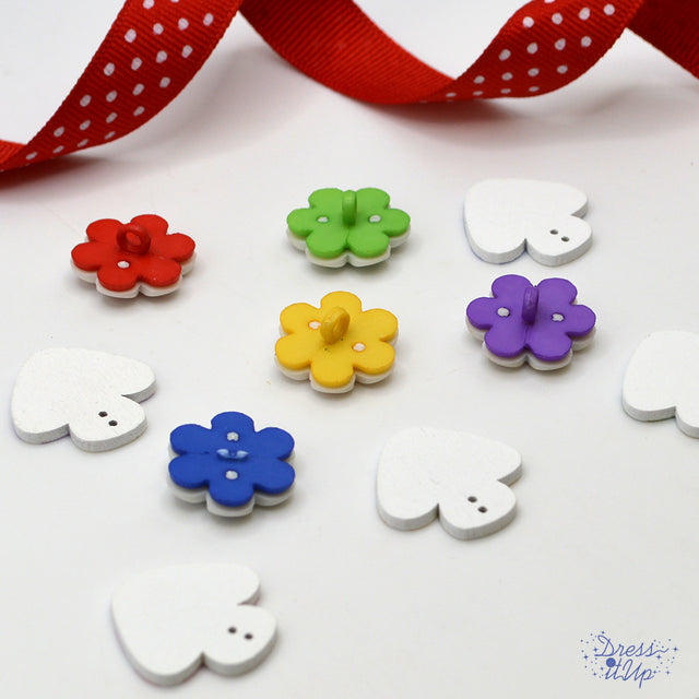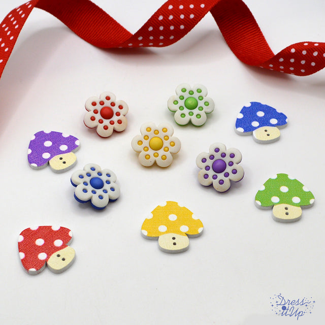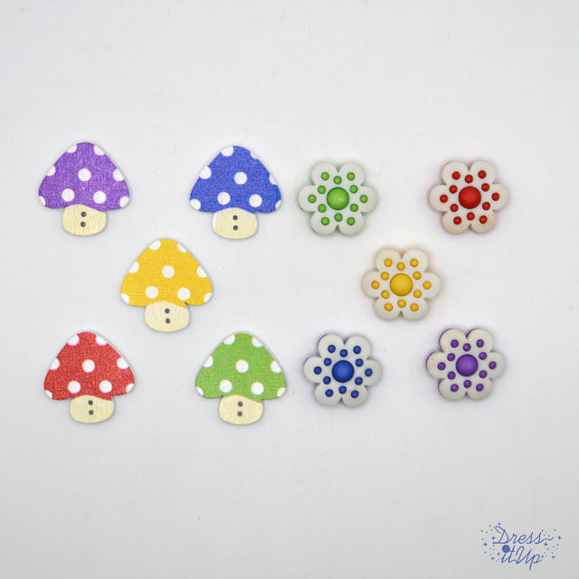 Shrooms and Blooms Multi Color Wood Mushroom and Flower Buttons